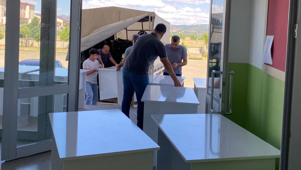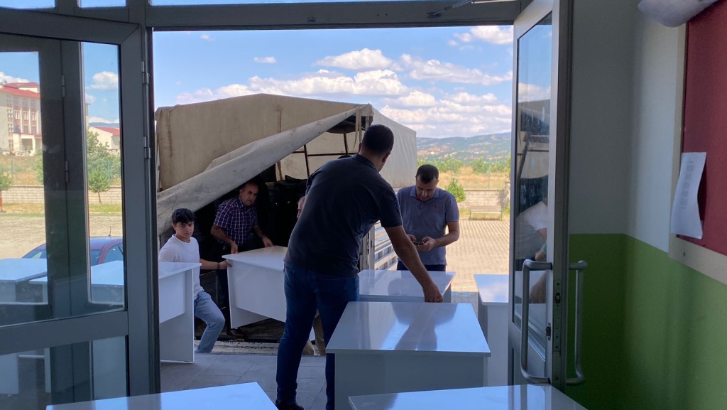 Proje kapsamında , ihtiyaç sahibi öğrenciler için titizlikle tasarlanıp üretilen 10 adet çalışma masasını, BİNGÖL / MERKEZ Borsa İstanbul Ekinyolu Ortaokulu’na teslim ettik. Masalar, Ekinyolu Ortaokulu idaresi tarafından ihtiyaç sahibi öğrencilere ulaştırılacaktır. Bu süreçte öğrencilerimiz hem üretim aşamalarında aktif rol alarak mesleki gelişimlerini pekiştirmiş hem de yardımlaşma ve dayanışma duygularını güçlendirme fırsatı bulmuştur.